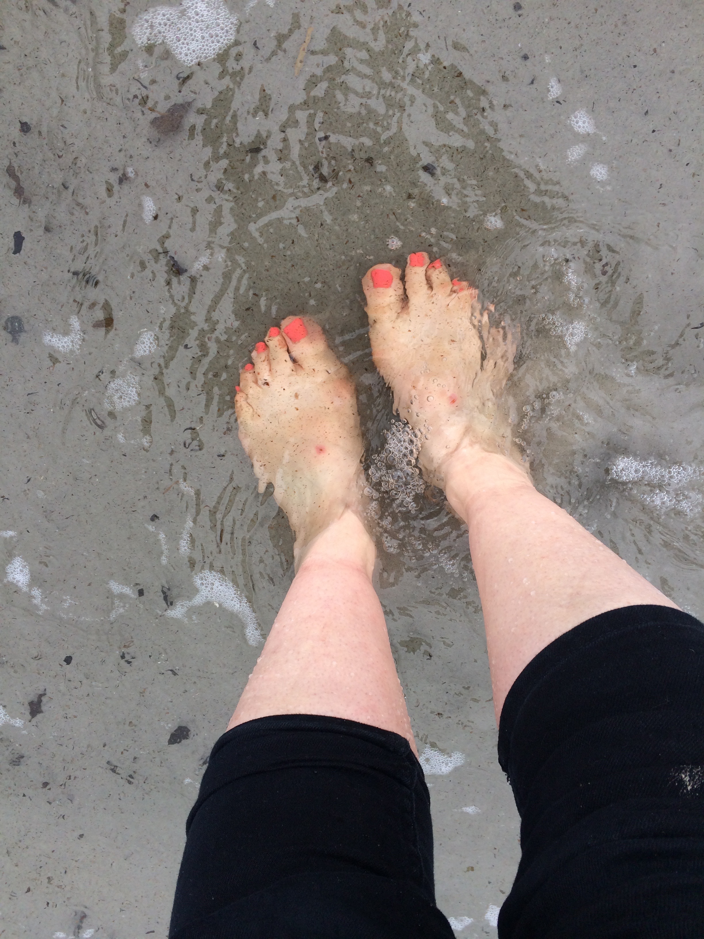 So today, I’ve done my 10,000 steps and been standing a while so I’m giving my stripily suntanned feet a rest.