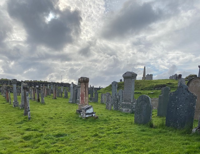 And so today; MrS lived in Paris for a while and recalls how family would visit the graves of their dead on what was called Toussaint. Headstones would be cleaned, and fresh flowers or ornaments set onto the graves. So in that tradition I visited our local cemetery on my walk today. Like many in the Hebrides headstones are placed to face the sea and to the east.