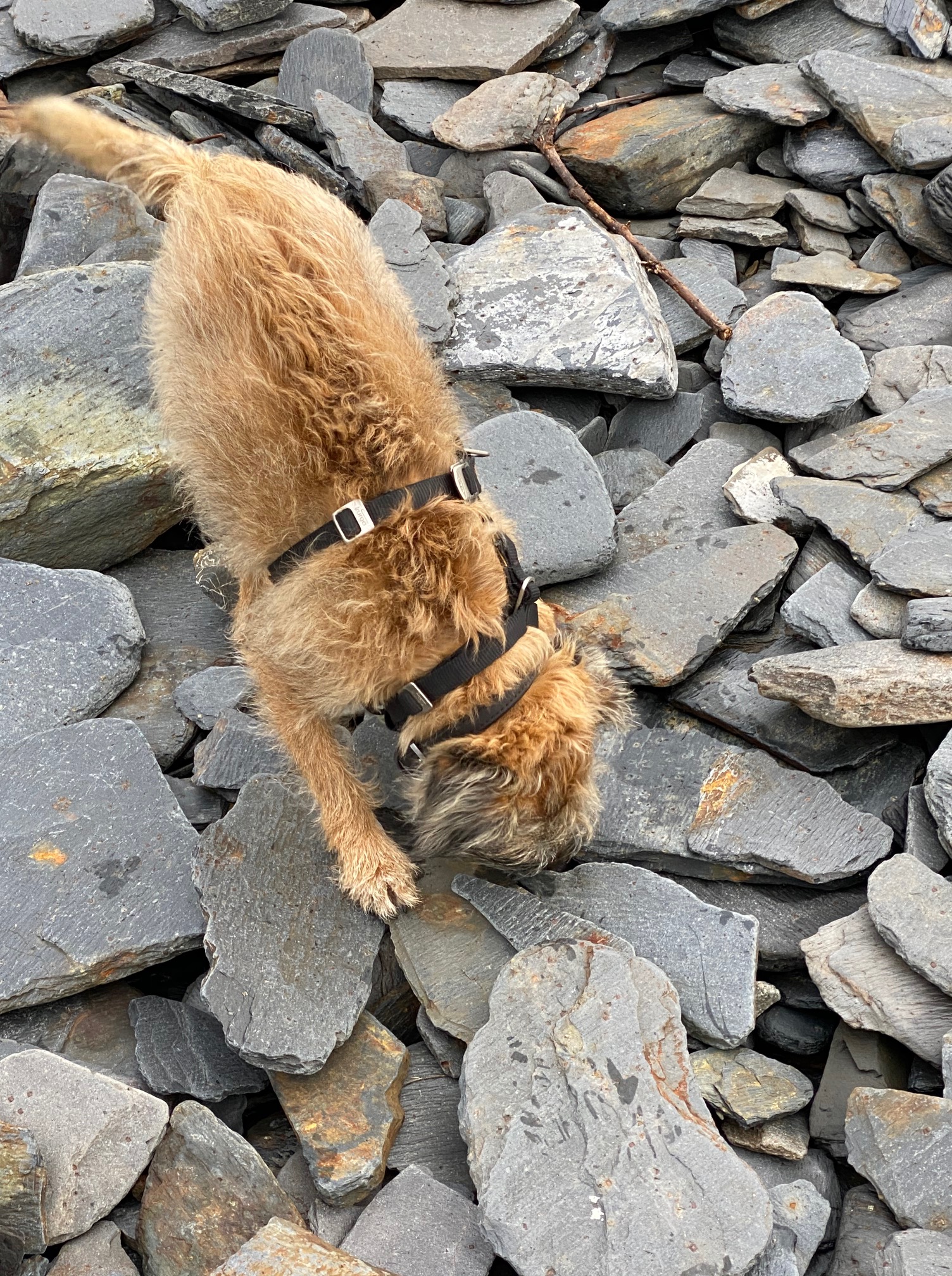 I don’t know if you can see but she’s digging for just the right bit of slate. She also likes chasing after nice smooth slate pebbles that MrS throws for her.