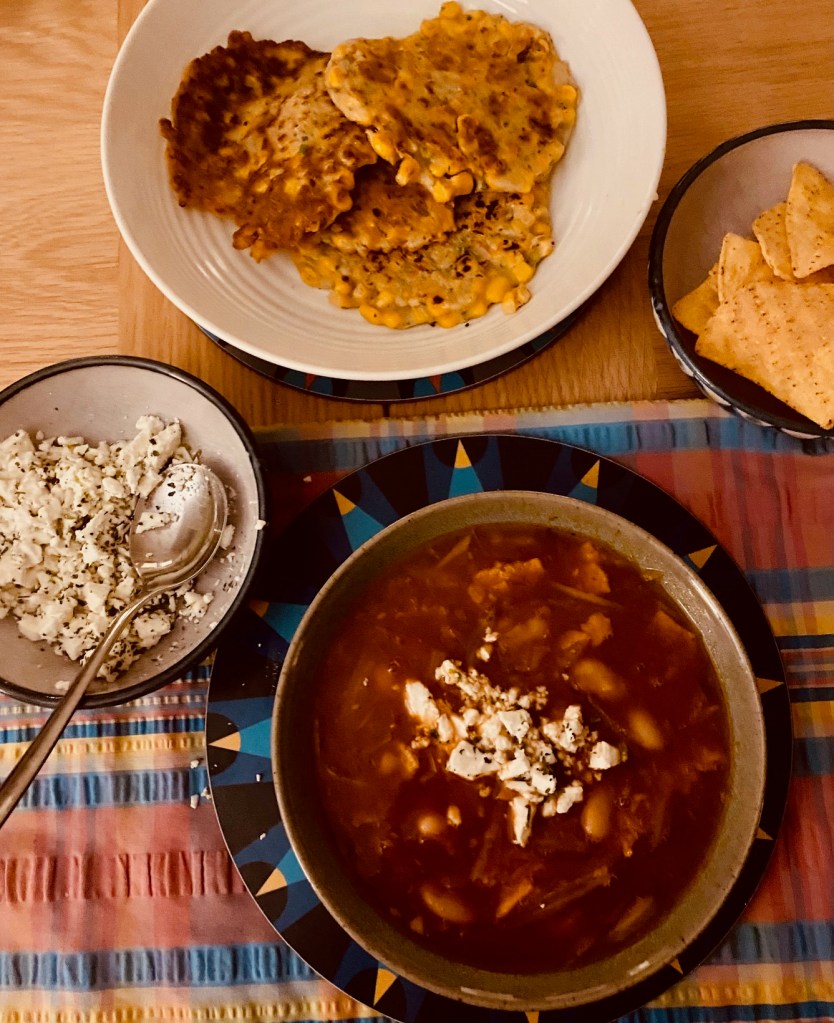 It’s meant to have toasted tortilla chips to go in it and a feta/avocado mixture to float on top, but we ate our last avocado a few days ago. Luckily there’s still some feta and lime left.