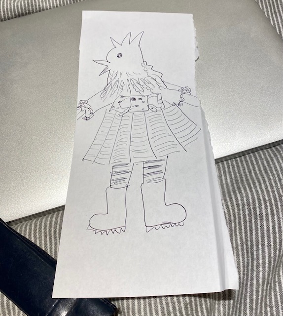 Did you play that game as a child? Perhaps you still do. There are two versions, one words, the other pictures*. I think the first version I remember was the wordy one. It’s a story writing game, I checked it out, and Wikipedia describes twelve steps. In my memory it’s much shorter and I never recall playing the final step ‘and the world said’ . But the phrase ‘and the consequence was’ definitely sticks in my head.